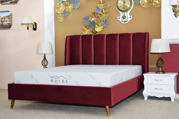 Patul Belmonde, tapitat cu o catifea delicata, in nuanta gri este alegerea potrivita, atat pentru un dormitor matrimonial, cat si pentru o camera de tineret. Nuanta eleganta, absolut superba, in tandem cu modelul simplu, dar sofisticat, ii ofera o nota rafinata. Patul Belmonde este fabricat din pal, lemn si metal, materiale de buna calitate, care rezista in timp. Cusaturile acestui model sunt delicate, iar micile detalii inserate pe tablia mare atrag cu siguranta atentia. Design-ul este unul fermecator, conturat armonios de picioarele patului, care sunt din lemn, oferind un aer elegant. Dimensiunea totala a patului este de 214x125x200 cm (LxHxl), permitand o saltea de 180x200 cm. Patul are o somiera de tip lamelar, solida, inclusa in pret, care ofera stabilitate. Inaltimea pana la somiera este de 35 cm, iar picioarele patului au o inaltime de 16 cm. Greutatea produsului este de 60 kg. Produsul vine livrat demontat, ambalat in 3 colete diferite, primul colet avand dimensiunea de 193x112x14 cm, al doilea de 210x26x22 cm, iar ultimul colet avand dimensiunea de 112x38x16 cm. Schita de asamblare se afla in colete. Salteaua sau alte elemente decorative prezente in imagini nu sunt incluse in pret. Ai posibilitatea de a achizitiona o saltea wolke de inalta calitate, la oferta, conform patului ales, doar la un click distanta, pe site-ul nostru.