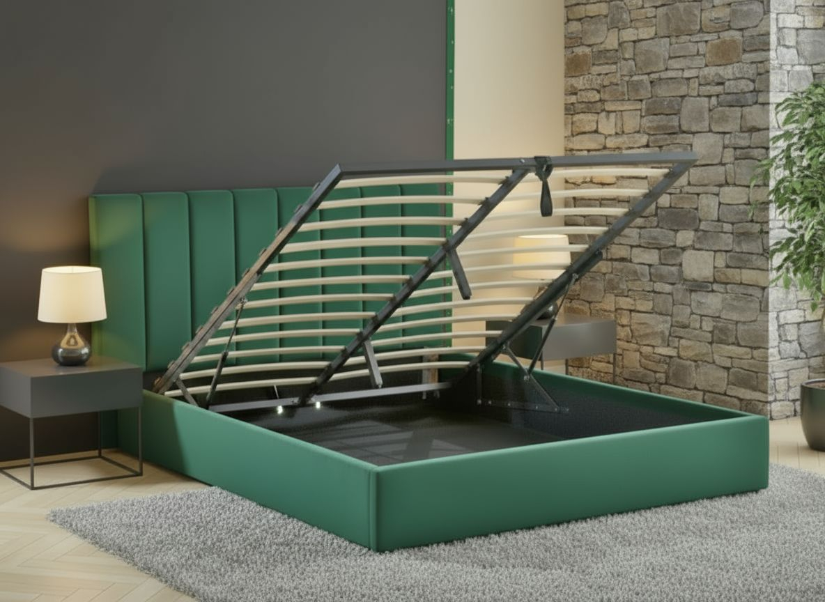Un mare avantaj al patului este lada de depozitare spațioasă, perfectă pentru lenjerii, pături sau perne, ajutând la menținerea ordinii în cameră. Sistemul de deschidere este practic și ușor de utilizat.