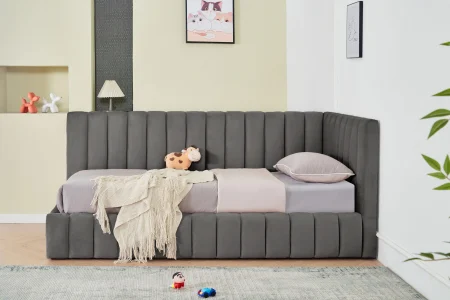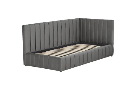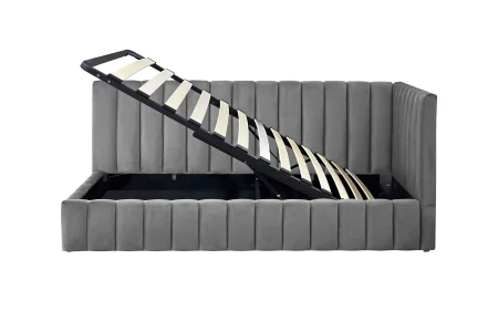 Pat Coral 160x200 cm Lada Depozitare Tapitat Catifea Gri Somiera Inclusa ( ML 2526 )