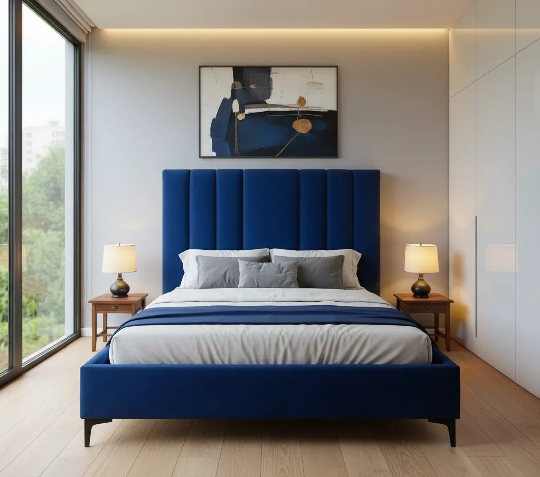 Pat Deja Vu 160x200 cm Tapitat Catifea Albastru Somiera Inclusa (cod ML 2005-19)
