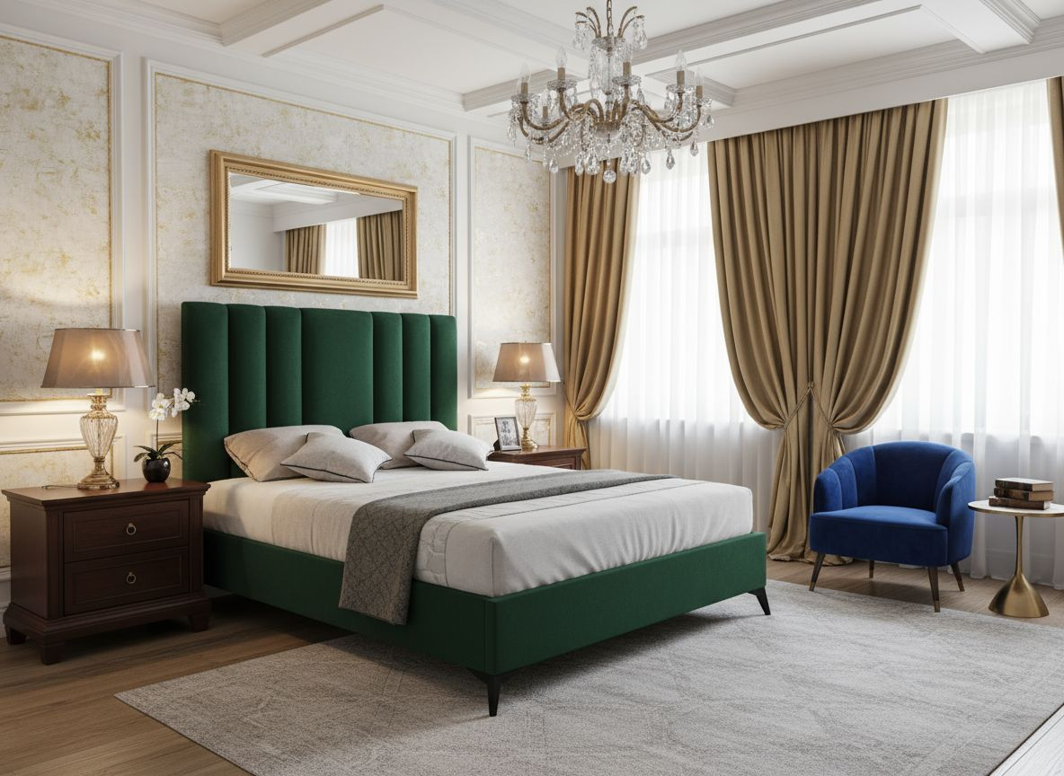 Patul ideal dormitorului matrimonial, cat si celui de tineret. Deja Vu este fabricat din pal, lemn si metal, materiale de buna calitate, care garanteaza durabilitate. Patul este tapitat cu catifea de nuanta verde, fiind o alegere excelenta pentru a crea o atmosfera calma si eleganta, fiind o optiune minunata pentru a crea un sanctuar relaxant in care te poti retrage dupa o zi agitata. Dimensiunea totala a patului este de 216x141x192 cm (LxHxl), permitand o saltea de 180x200 cm. Picioarele metalice sunt de culoare negru, fiind foarte rezistente. Tablia patului este atent lucrata, modelul fiind unul elegant si simplu, datorita cusaturilor. Deja Vu vine dotat cu o somiera de tip lamelar, cu cadru metalic, inclusa in pret, iar distanta pana la somiera este de 32 cm. Salteaua sau alte elemente decorative prezente in imagini nu sunt incluse in pret. Produsul vine livrat demontat, schita de asamblare se afla in colet. Ai posibilitatea de a achizitiona o saltea wolke de inalta calitate, la oferta, conform patului ales, doar la un click distanta, pe site-ul nostru.