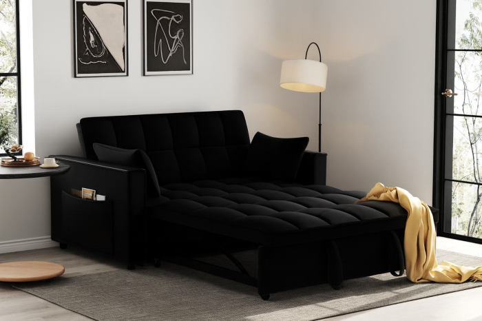 Funcția extensibilă transformă rapid canapeaua într-un pat confortabil, ideal pentru musafiri sau pentru momentele de relaxare. Dimensiunea redusă o face potrivită pentru apartamente, garsoniere sau colțuri de living unde este nevoie de o soluție practică, dar stilată.