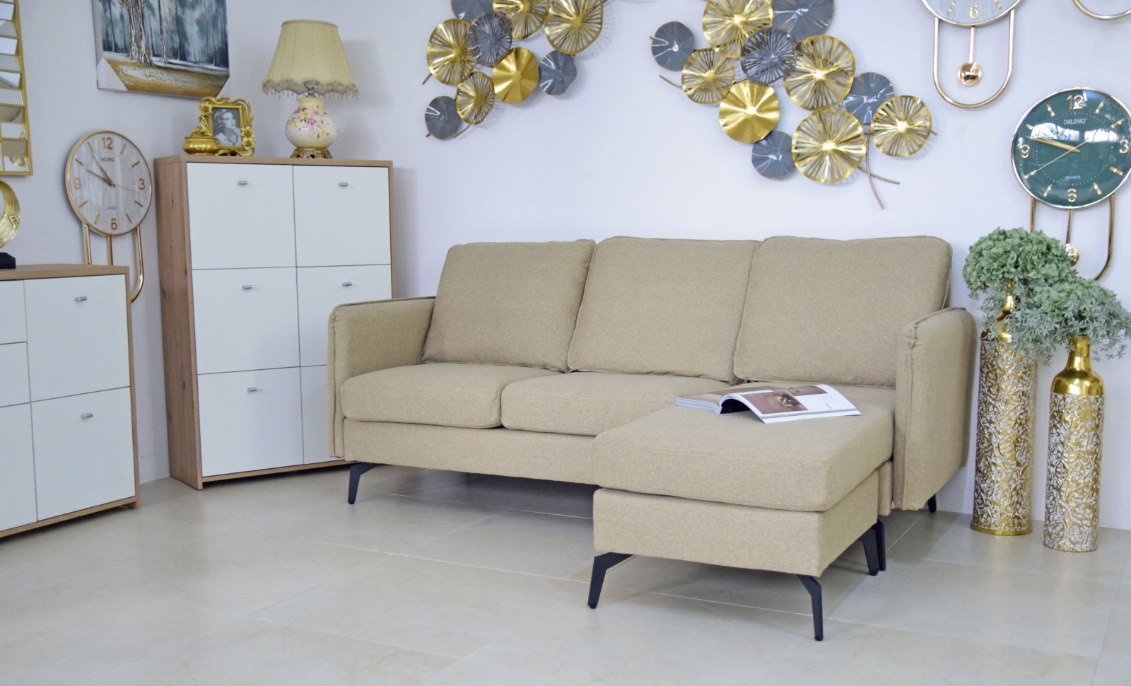 Coltar Hyperion Reversibil Stânga/Dreapta 193x86x136 cm Stofa Bej (cod AF 2433-04)