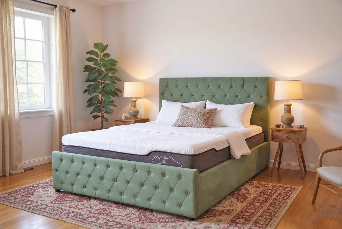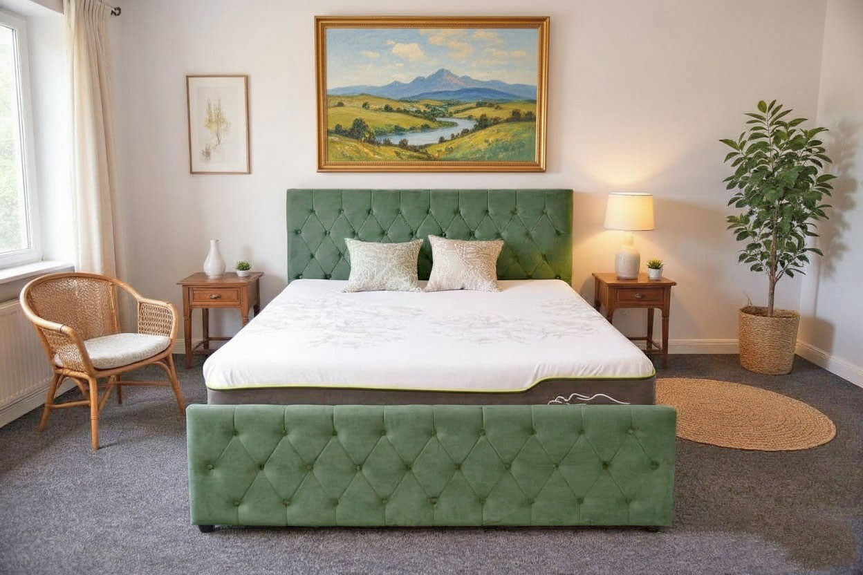 Cadru și tablie frontală: Tapițate în același stil pentru un aspect armonios
