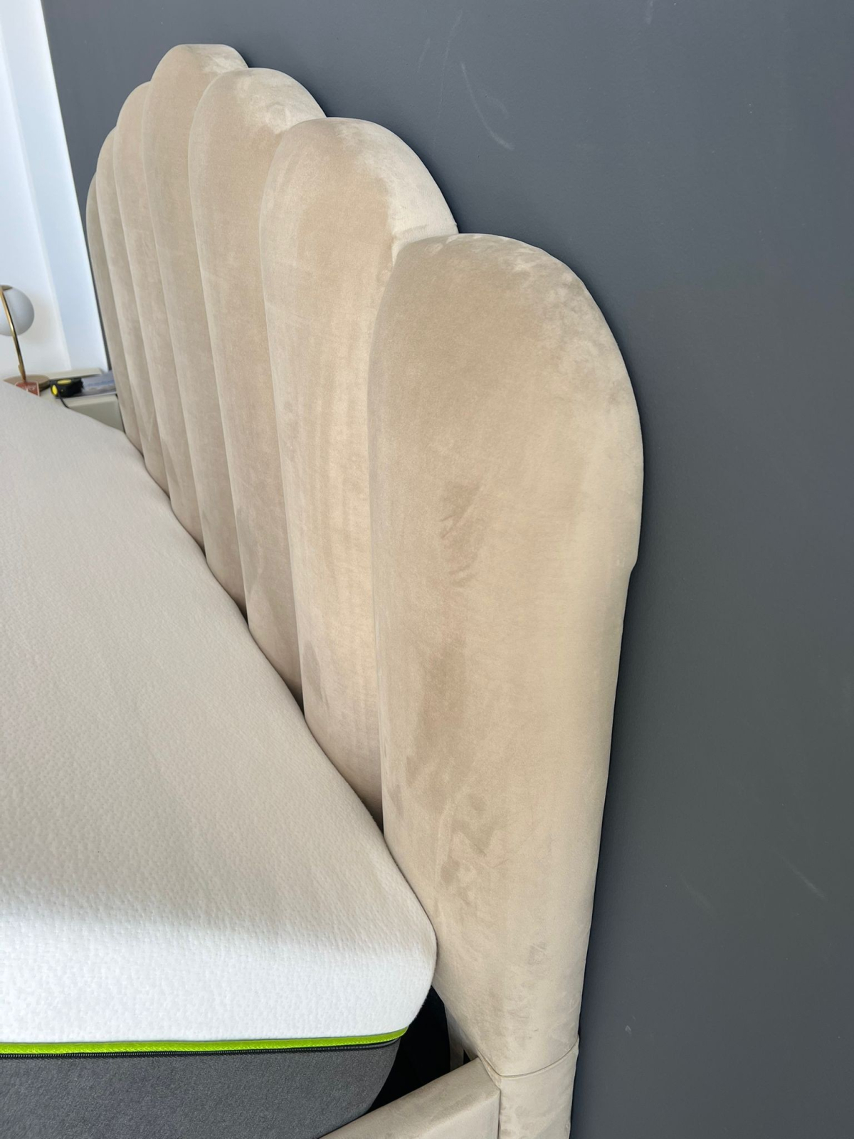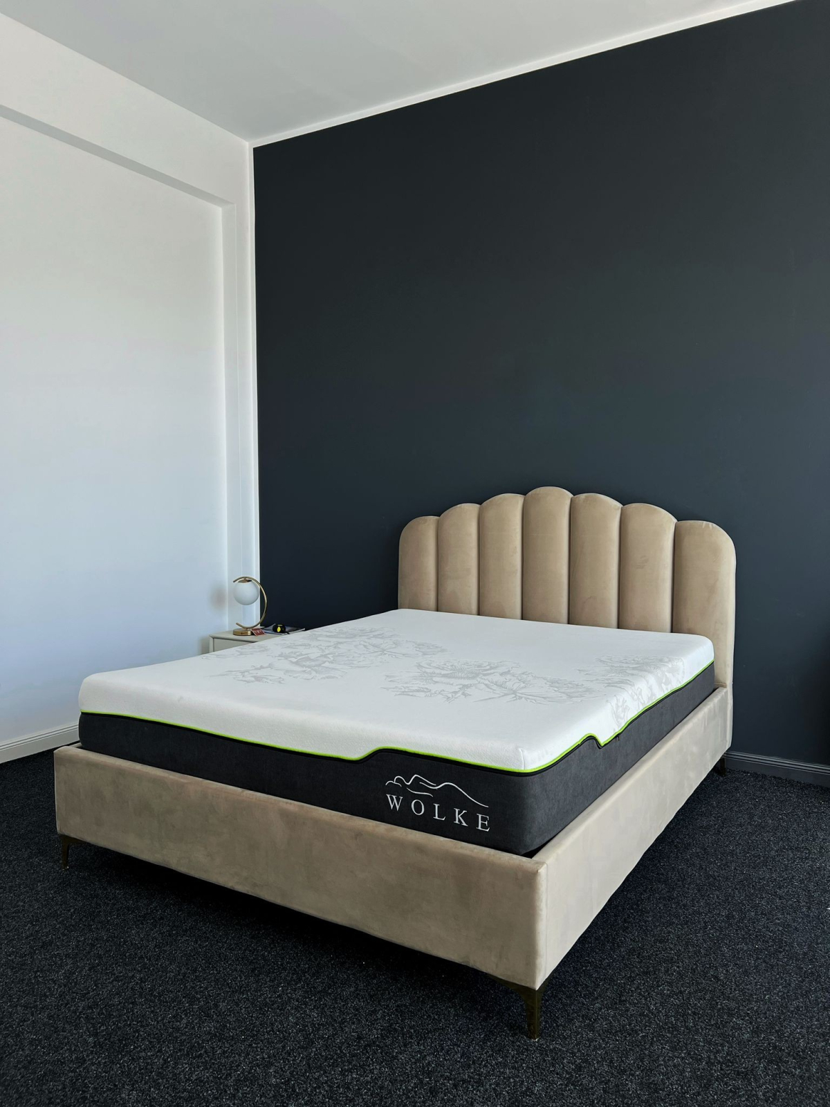 Patul Cloud, minunat pentru orice tip de dormitor si decor, datorita nuantei versatile, usor de asortat si mereu in trend. Cloud este un pat modern, cu tablia inalta, foarte bine definita, gratie cusaturilor delicate, oferind un aspect elegant. Tapitat cu catifea Velvet, un material cu aspect luxos si foarte moale la atingere, de culoare crem, care tinde sa isi schimbe nuanta in functie de lumina, acest pat este alegerea perfecta pentru dormitor, deoarece adauga un aer de mister si rafinament. Dimensiunea totala a patului este de 214x134x191 cm (LxHxl), iar suprafata de dormit este de 180x200 cm, ce permite o saltea cu aceiasi dimensiune, pentru un spatiu generos si un somn odihnitor. Inaltimea pana la somiera de tip lamelar, solida, cu cadru de metal inclusa in pretul patului este de 32 cm. Design-ul patului Cloud este deosebit, multumita picioarelor metalice de culoare auriu, care asigura rezistenta si un aspect pe masura. Salteaua sau alte elemente decorative prezente in imagini nu sunt incluse in pret. Produsul vine livrat demontat, schita de asamblare se afla in colet. Ai posibilitatea de a achizitiona o saltea wolke de inalta calitate, la oferta, conform patului ales, doar la un click distanta, pe site-ul nostru.