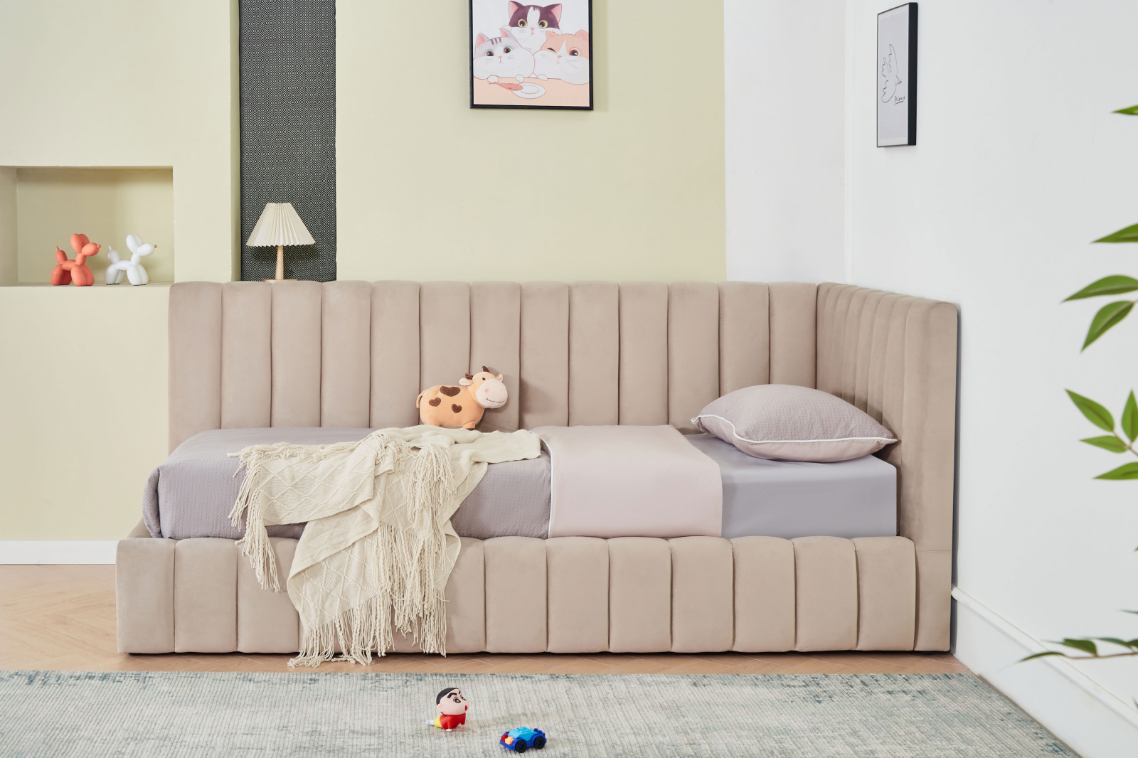 Pat Coral 90x200 cm Lada Depozitare Tapitat Catifea Gri Somiera Inclusa ( ML 2526 )