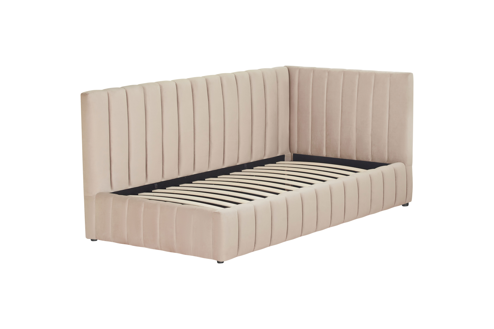Pat Coral 90x200 cm Lada Depozitare Tapitat Catifea Bej Somiera Inclusa ( ML 2526 )