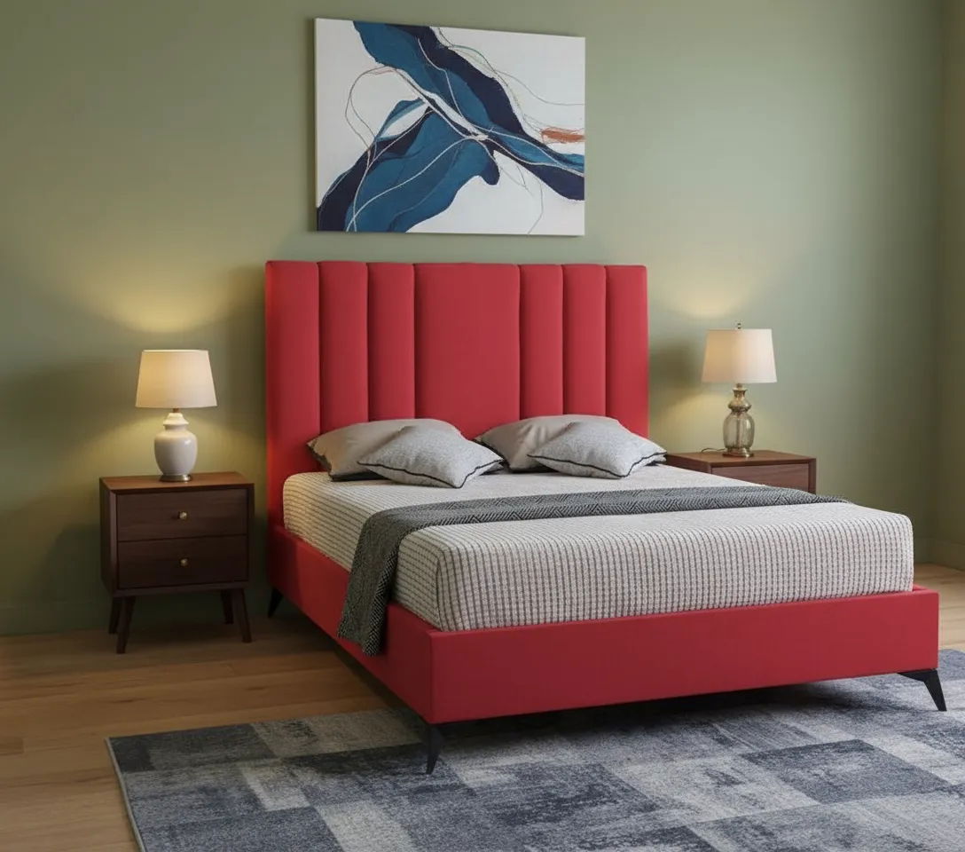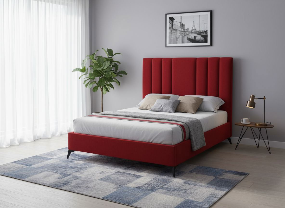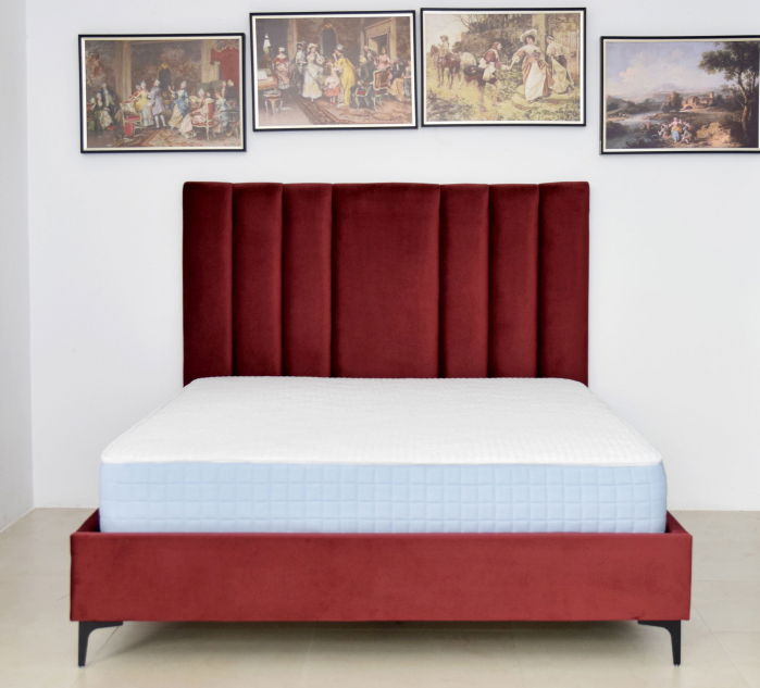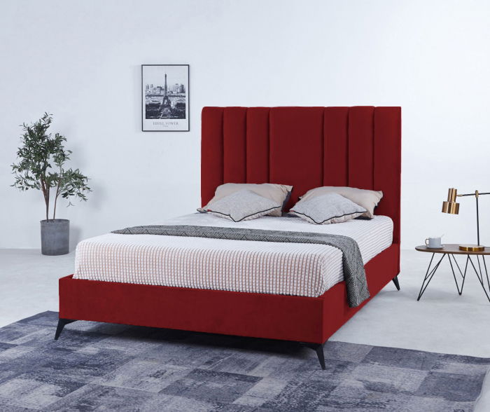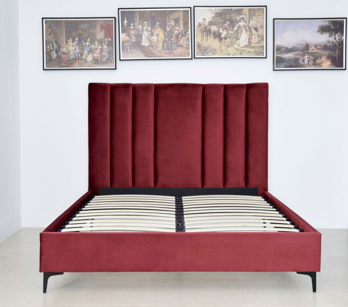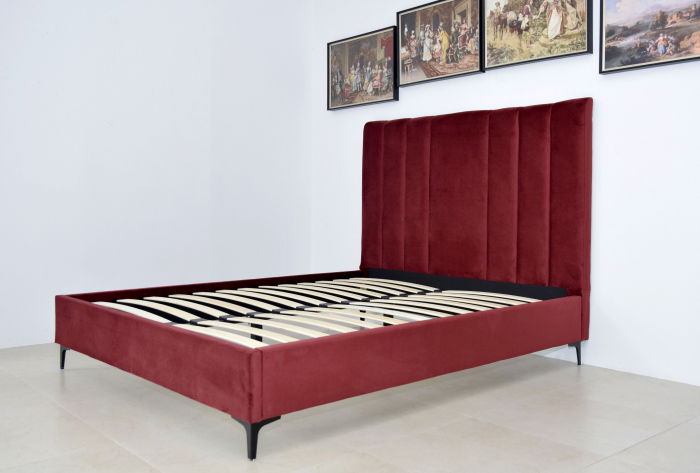 Patul Deja Vu in nuanta burgundy este piesa ideala dormitorului matrimonial, dar si celui de tineret. Cadrul patului este realizat din materiale, precum pal, lemn si metal, iar tapiteria este dintr-o catifea de calitate superioara, care denota un aspect luxos. Nuanta magenta este o nuanta vibranta si intensa, care simbolizeaza pasiunea, creativitatea si energia. Somiera este inclusa in pretul patului si este de tip lamelar, cu cadrul metalic, foarte stabila, ce permite o saltea de 180x200 cm. Dimensiunea totala a patului este de 216x141x192 cm (LxHxl). Distanta pana la somiera este de 32 cm. Picioarele metalice sunt de culoare negru, fiind foarte rezistente. Salteaua sau alte elemente decorative prezente in imagini nu sunt incluse in pret. Produsul vine livrat demontat, schita de asamblare se afla in colet. Ai posibilitatea de a achizitiona o saltea wolke de inalta calitate, la oferta, conform patului ales, doar la un click distanta, pe site-ul nostru.