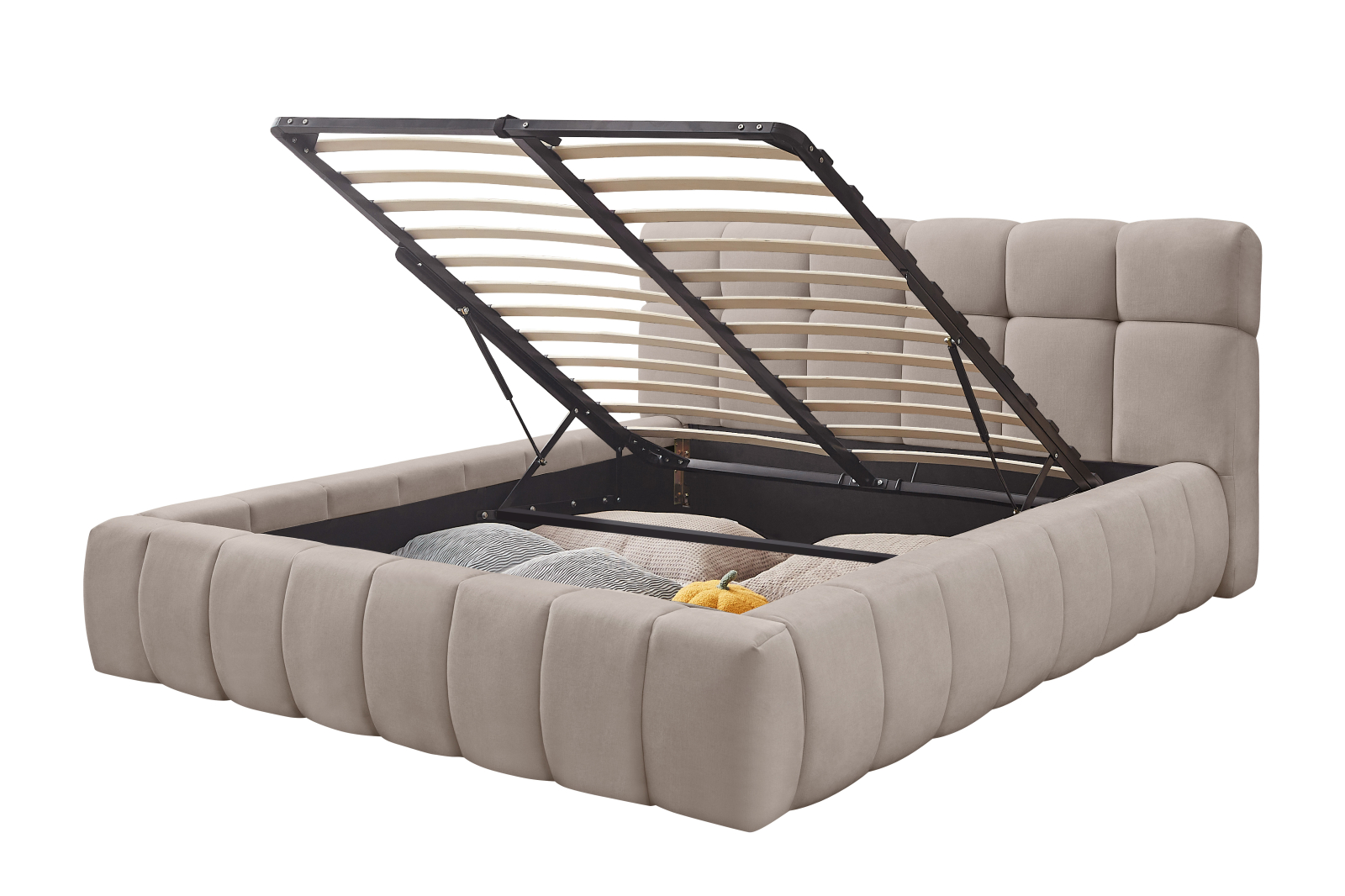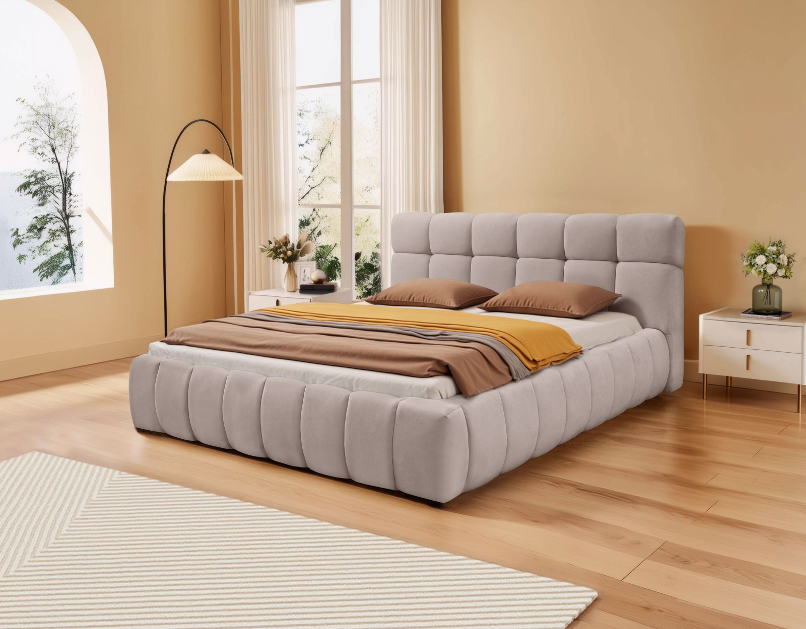 Pat Grande 160x200 cm Tapitat Stofa Maro Deschis Somiera Inclusa ( ML 2516 )