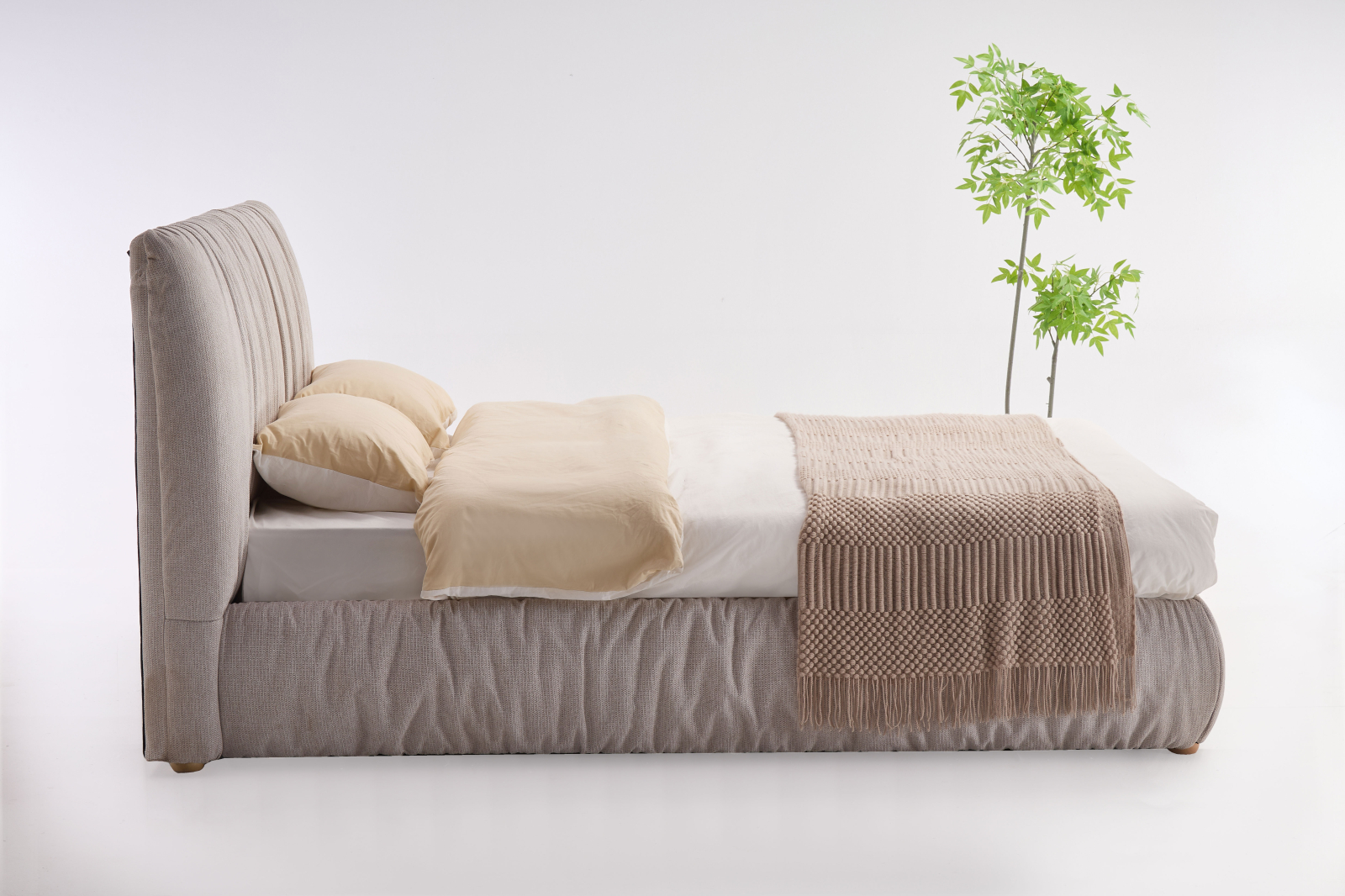 Pat President 180x200 cm Tapitat Stofa Bej Somiera Inclusa ( ML 2506 )