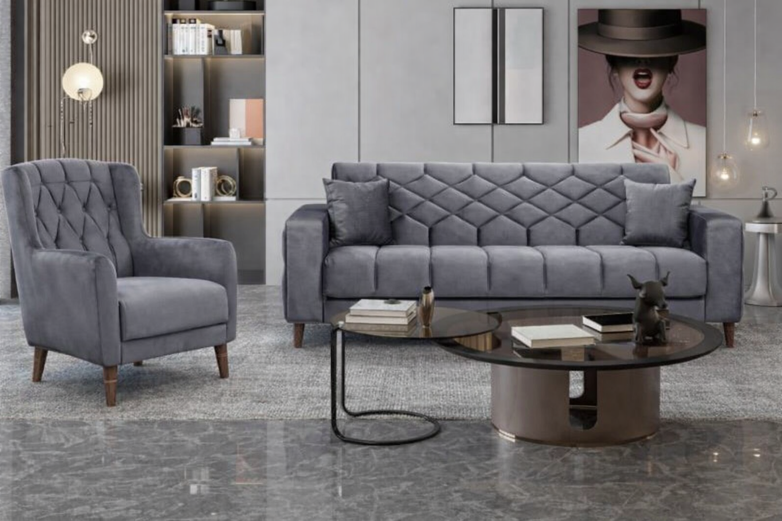 Daca sunteti in cautarea unui set de canapele 3+2+1, care sa fie atat elegant, cat si practic, atunci setul Melissa, extensibil cu spatiu de depozitare este alegerea potrivita. Acest set este combinatia perfecta, intre confort si stil. Nu numai, ca setul Melissa are in componenta sa, 3 piese de mobilier ideale pentru sufragerii, living-uri sau incaperi spatioase, ci este ideal si pentru cei care doresc sa aiba 2 paturi suplimentare in spatiul lor de locuit pentru oaspeti. Cu designul sau extensibil, puteti transforma, atat canapeaua de 3 locuri, avand spatiul de dormit 190x110 cm (Lxl), cat si canapeaua de 2 locuri, avand spatiul de dormit 130x110 cm (Lxl) , intr-un pat, in doar cateva secunde, oferind un spatiu confortabil si relaxant. In plus, cadrul realizat din lemn, pal si metal al acestui set, ofera durabilitatea necesara pentru utilizarea de zi cu zi. Fotoliul are un design modern, avand 10 nasturi decorativi, iar picioarele din lemn, contureaza aspectul integral al acestuia. Mecanismul click-clack este usor de utilizat, astfel incat, nu veti depune efort la extinderea canapelelor, dar nici la strangerea acestora. Compartimentul de depozitare este, de asemenea, o caracteristica excelenta, oferind mai mult spatiu pentru toate lucrurile esentiale, cum ar fi paturi, perne si multe altele. Cele 3 piese de mobilier din setul Melissa sunt tapitate din catifea, material ce reprezinta luxul si eleganta, iar nuanta acestora este gri. Griul este culoarea intuitiei, a iluminarii si a imaginatiei creatoare, fiind o nuanta neutra, dar mereu in voga. Setul este completat cu cele 4 perne decorative, in aceiasi nuanta si material. Astfel, design-ul extensibil a celor doua canapele gri, care se potrivesc oricarui stil de viata, dar care economisesc spatiu, avand lada de depozitare, in combinatie cu fotoliul din acelasi material si culoare, reprezinta setul perfect pentru casa ta. Produsele vin livrate demontate, ambalate in 5 colete diferite, primul colet avand greutatea de 57 kg si dimensiunea de 193x38x115 cm , al doilea are greutatea de 40 kg, iar dimensiunea de 130x38x115 cm, cel de al treilea are greutatea de 25 kg, iar dimensiunea de 75x80x72 cm, cel de al patrulea are greutatea de 22 kg, iar dimensiunea de 86x55x43 cm , iar ultimul colet are greutatea de 22 kg, dimensiunea fiind de 86x55x43 cm.