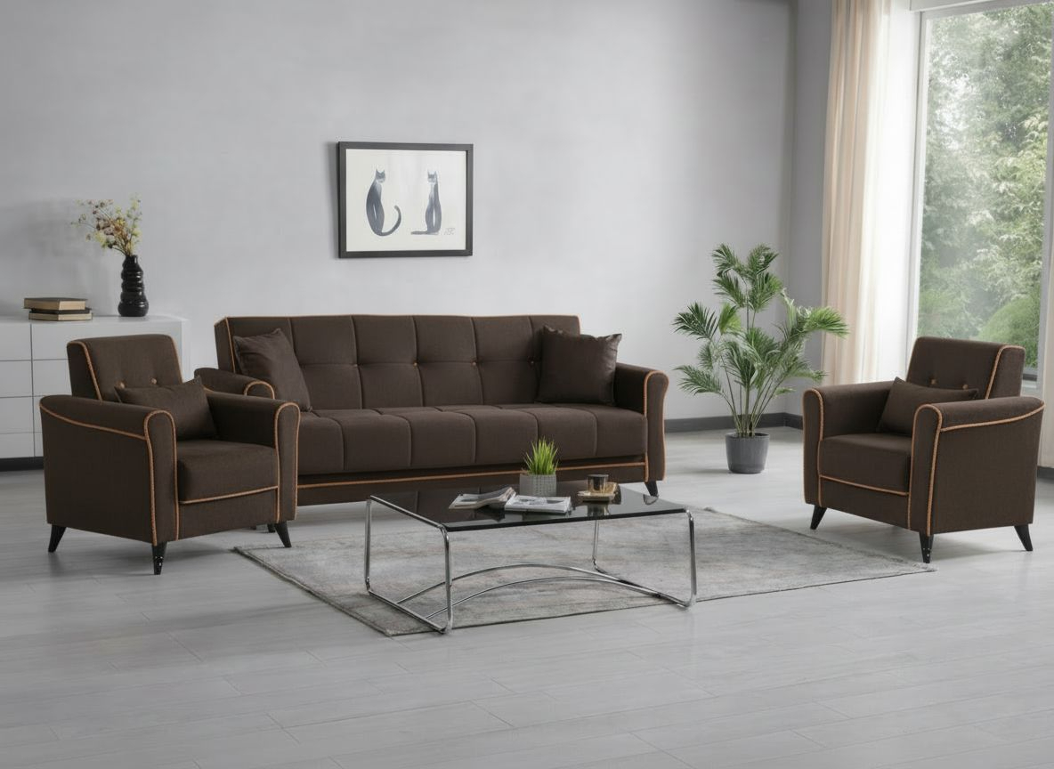 Set canapea cu fotoliu 3+1+1 model Viktorya Lada Depozitare Tapitat Catifea Maro inchis