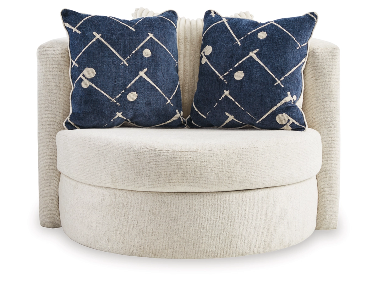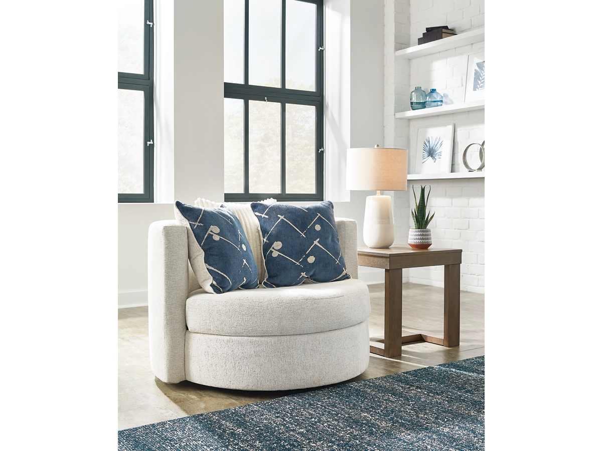 Fotoliul rotativ completează perfect canapelele, oferind un spațiu ideal pentru relaxare, citit sau momente de socializare.